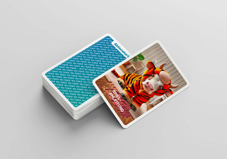 Der Name des Spiels ist Programm: Wie eine ängstliche Kuh, die sich als Tiger verkleidet, hilft Mu-Tiger, in einem sicheren und humorvollen Umfeld Ideen zu entwickeln und sie sofort auszuprobieren. Durch zig-fache Spielrunden wurde das kollaborative Spiel bereits iterativ weiterentwickelt. Das Feedback der vielen Tester/innen war überwältigend positiv. Besonders freut uns, dass echte Mutanfälle ausgelöst wurden – auch bei uns selbst!