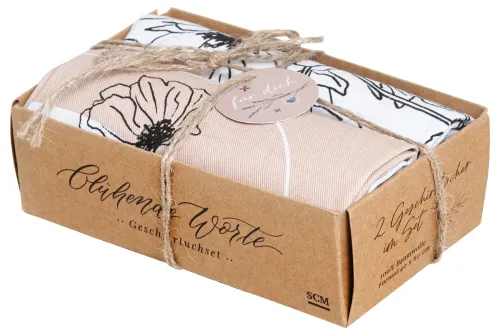 Mit diesen Geschirrtüchern ziehen blühende Worte in die Küche ein. Die wunderschön gestalteten Tücher sind nicht nur dekorativ, sondern geben gleichzeitig eine ermutigende Botschaft weiter: „wunderbar gemacht“ und „gesegnet“ ist in kalligrafierten Worten auf den Tüchern zu lesen. Durch die hübsche Verpackung sind sie das perfekte Geschenkt für viele Anlässe.